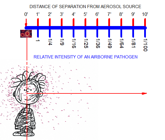 I suggest we take a scientific approach to understanding the transmissibility of airborne pathogens like Sars-CoV-2/COVID19 from an infected person to persons in the proximity of the infected person. Application of the principle of the inverse square law can help us understand how we are more susceptible to infection as we approach an infected person.