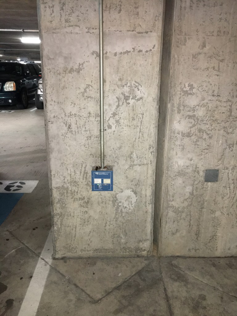 The excellent parking garage features high-tech checkout pavilions make the exiting fast and efficient. While parking, a nearby carbon-monoxide (CO) sensor caught my eye. This is what I saw.