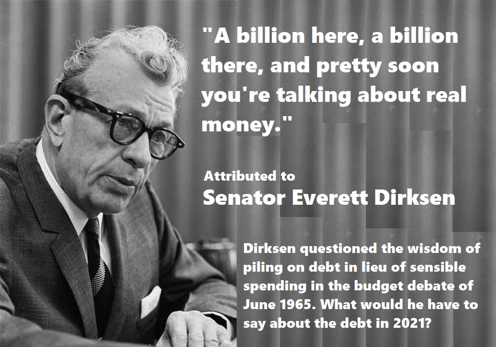 In June of 1965, the U.S. Senate debated raising the national debt ceiling. The Vietnam War and Medicare drove it to $319,907,087,795.48 — 319 billion dollars.