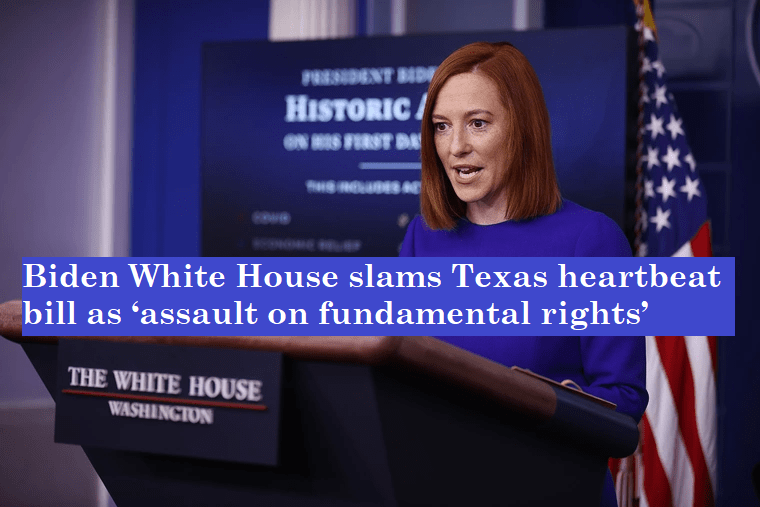 White House Press Secretary Jen Psaki decried the Texas Heartbeat Bill saying, “This is the most restrictive measure yet in the nation and the most restrictive recent assault on women’s fundamental rights under Roe v. Wade.”