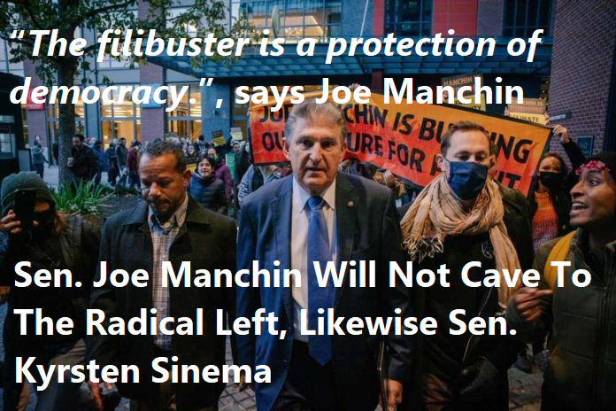 Sen. Manchin explains the filibuster thus: “The filibuster is a protection of democracy.”
