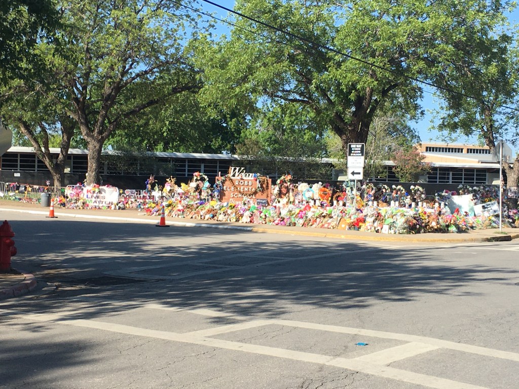 On my personal visit to the school on July 9, 2022, I was overwhelmed with emotion as I captured photographs of the hundreds of memorials placed along the front of Robb Elementary. The grief of the parents, grandparents, and surviving school employees was palpable.