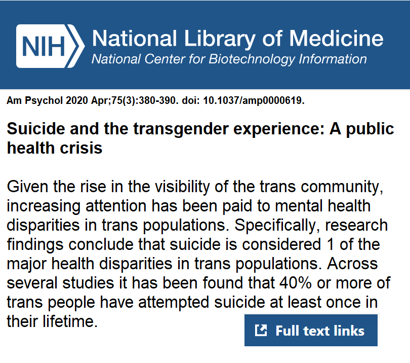 - Injury in the transgender population: What the trauma surgeon needs to know | NIH National Library of Medicine, October 2018
