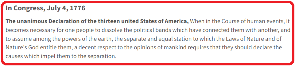 1776 – The 13 British colonies of North America declared their independence from Great Britain on the authority of a principle of the government’s role to secure the people’s natural rights.