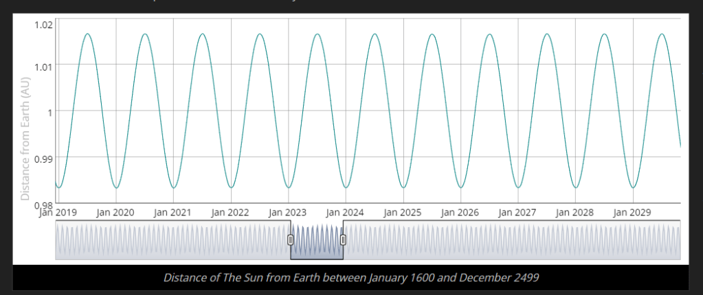 At the moment of 1016 hours on 1 August 2023, the distance between the Earth and the sun was 151,535,207 km (94,159,612.23952119 miles). 6 hours later, at 1620 hours, the distance between the earth and the sun was 151,833,459 km (94,344,937.44034836 miles), a difference of 298,252 km (185,325.2008271693 miles). Is this distance significant?