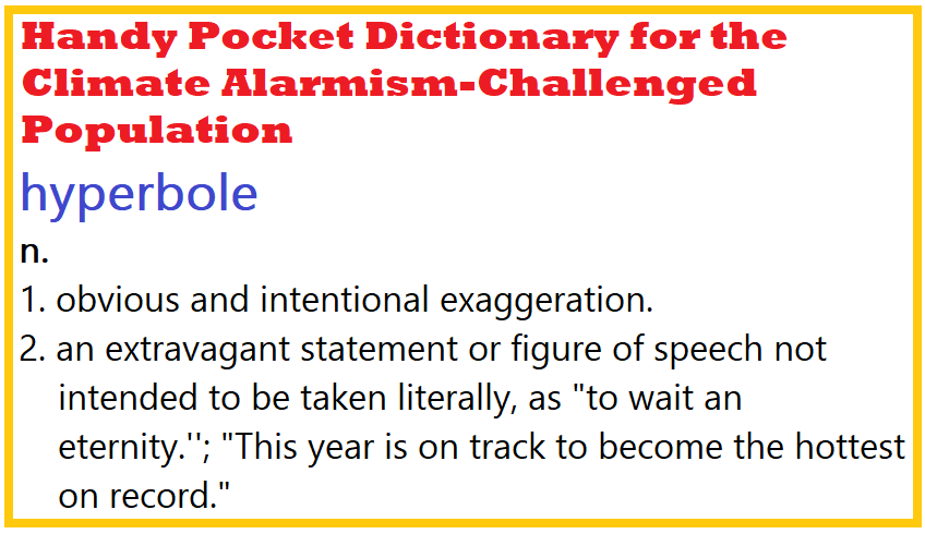 As a young Navy man, my squadron of A6A Intruders (VA-42) regularly trained aircrews to accurately drop practice bombs in the desert around Yuma, Arizona. How well I remember Yuma in the summertime: 120°F and upward IN THE SHADE. The highest recorded temperature for Yuma, Arizona was 124. Not even one of the self-anointed climate alarmists attributed the heat to ‘climate change.’