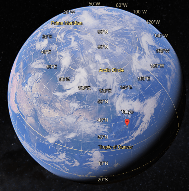 Tokyo, Japan is the world’s largest city with a 2023 population of 37,194,105, has a few million more people than the great state of Texas. If not for the pointer in the Google Earth image, a perspective 2,000 miles high, one would neve suspect human habitation in that great city.