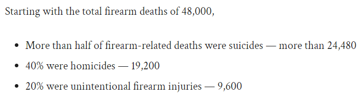 The 2022 CDC Firearm Injury and Death Prevention cites, “In 2022, there were more than 48,000 firearm-related deaths in the
