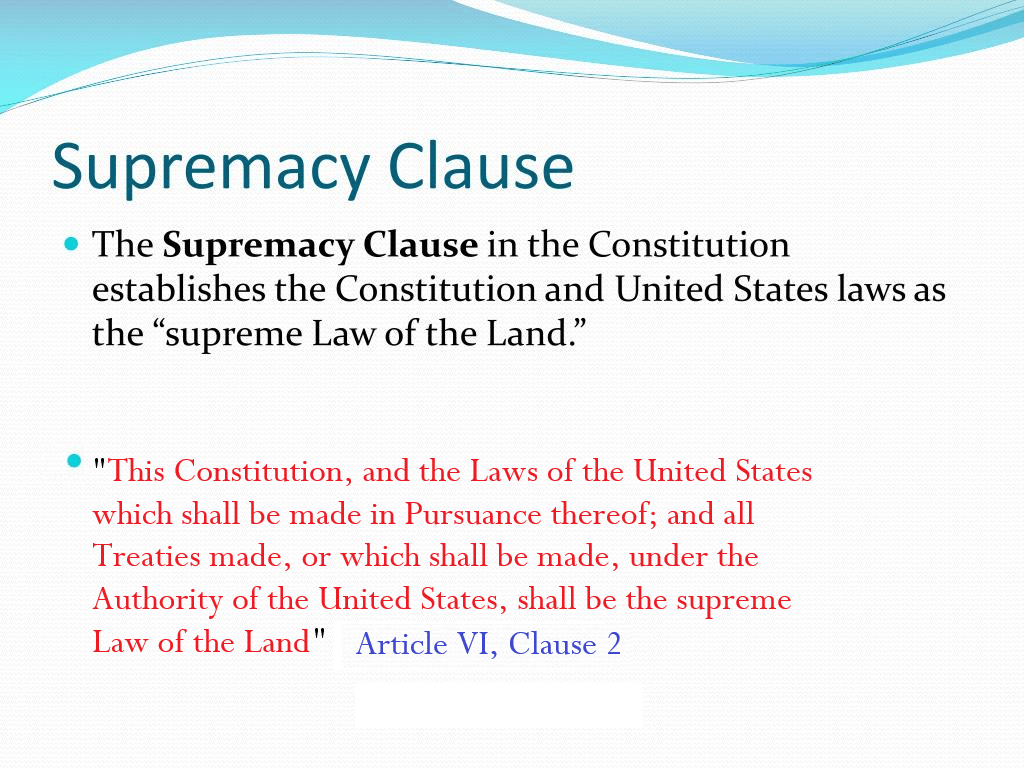The second clause of Article 6 of the U.S. Constitution defines the Supreme Law of the Land.