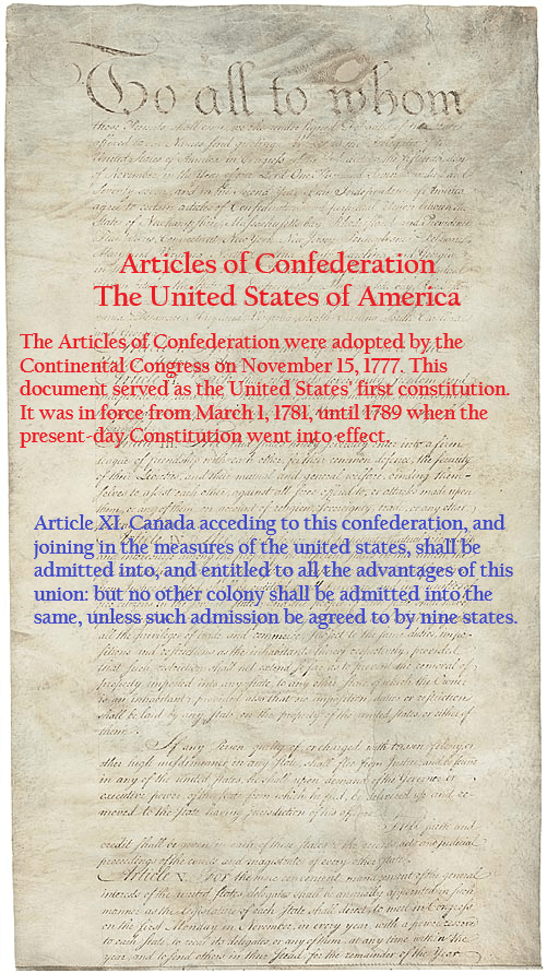 For years, our nation was governed by the Articles of Confederation. During that time, Canada needed no special permission to join the United States of America.